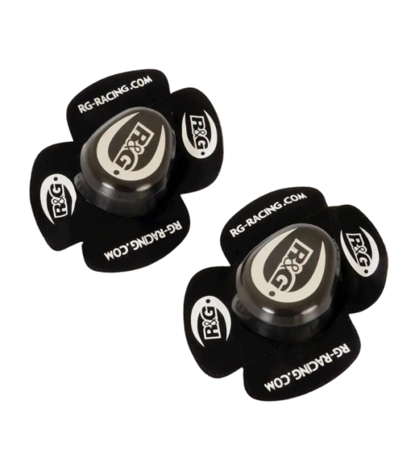 Tenga en cuenta que los deslizadores de rodillas R&G están equipados con velcro de “gancho”, que se fijan al velcro de “bucle” del traje. Si sus prendas de cuero tienen velcro de “gancho” en el traje, necesitará adaptadores para deslizadores de rodillas R&G, disponibles por separado.